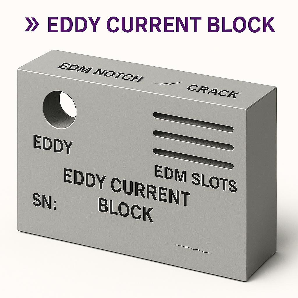 Eddy Current (ET) – referansestykker med kunstige defekter, sprekker, EDM‑spor